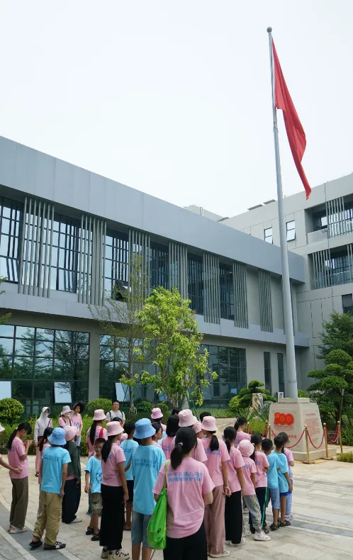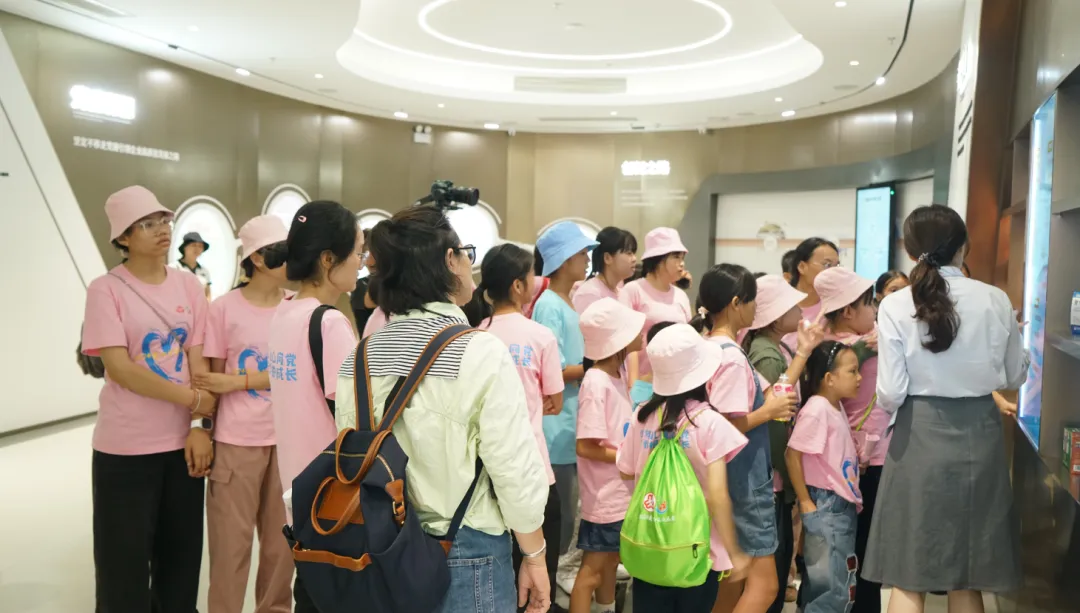 紧接着,孩子们来到了建党百年庆典红旗——070号红旗前。讲解员讲述了LEwin乐玩药业集团与庆典红旗的深厚渊源。孩子们听得津津有味,眼中闪烁着对党和国家的热爱与敬仰。